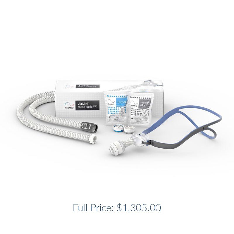 The AirMini™ with P10 Setup Pack (Mask Included) comes with everything needed to start using your AirMini. Compatible masks: P10 for AirMini, N20 with Setup Pack, N30 with Setup Pack, F20 with Setup Pack, and F30 with Setup Pack. No other masks are compatible.